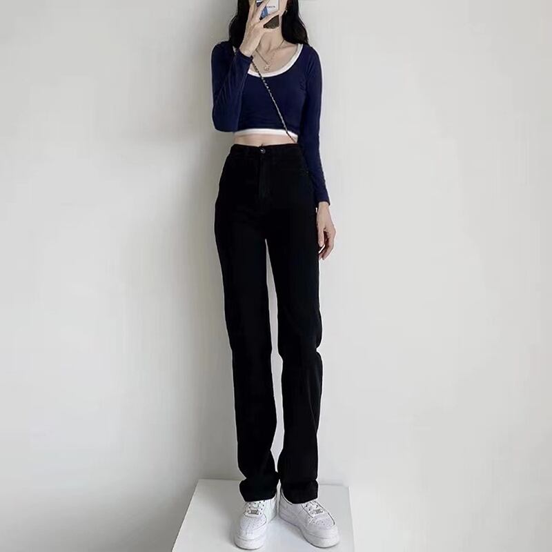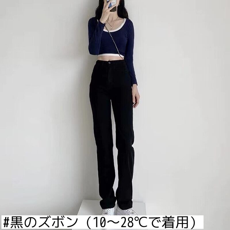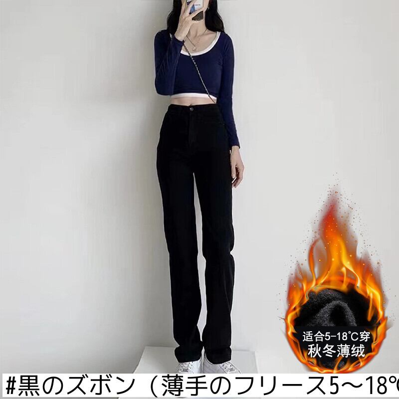 黒のストレートジーンズの女性の春と秋のハイウエストの薄くて背の高い婦人服2021新しい秋と冬のシガレットパンツとベルベット ブラック スプリング 春物 オータム 秋物 ウィンター 冬物 youqi93082978991