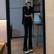 黒のスーパーモデルの馬蹄形ジーンズの女性の春と秋のハイウエストスリムレディース痩身2021新しい秋のフレアパンツ ハイウェスト レッド ブラック スプリング 春物 オータム 秋物 youqi37504714122