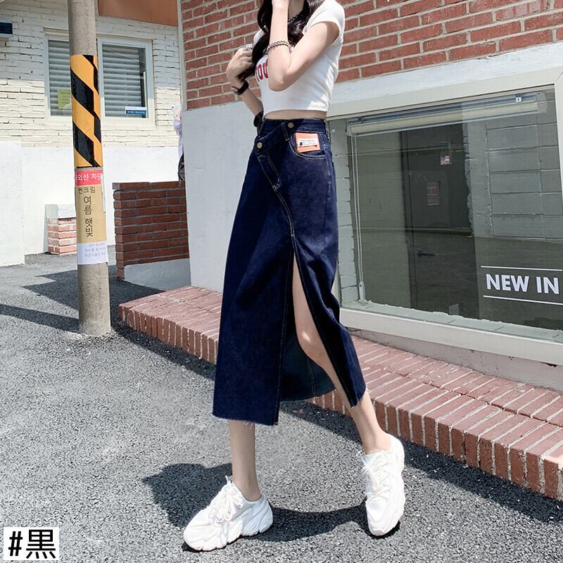 不規則なデニムスカートの女性の夏の薄いセクションは薄くてハイウエストのAラインオールマッチスプリットバッグヒップロングスカートトレンディです ハイウェスト サマー 夏物 youqi81259639562
