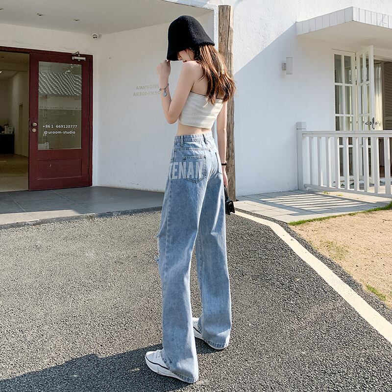 ワイドレッグジーンズレディースハイウエスト春2021年新作ルーズ乞食スモールストレートモップホールパンツ ハイウェスト スプリング 春物 ワイドパンツ youqi26979250377