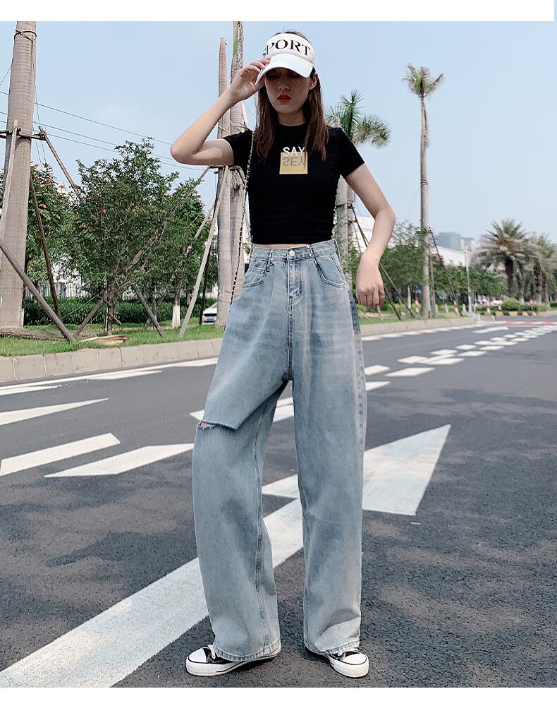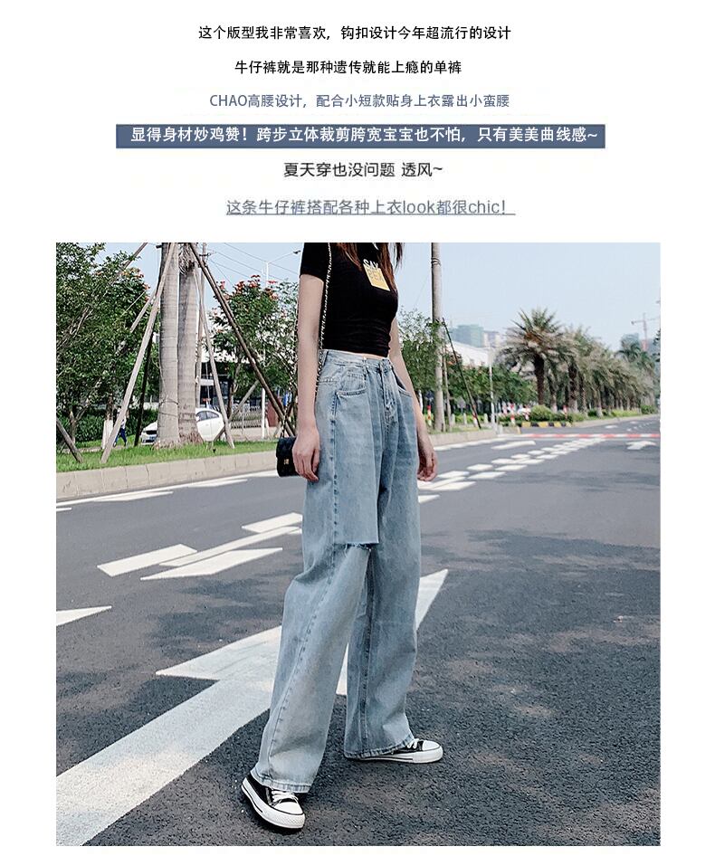 春のハイウエストルーズリップドワイドレッグジーンズ2021年新作ドレープヒュンヤパパストレートレッグモップパンツ スプリング 春物 youqi4621200642