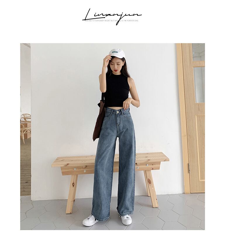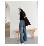 -ウエストジーンズレディースルーズバージョンは細い縦管cecワイドレッグペンダントヒョナ同スタイルオールマッチお父さん ワイドパンツ youqi90478327430