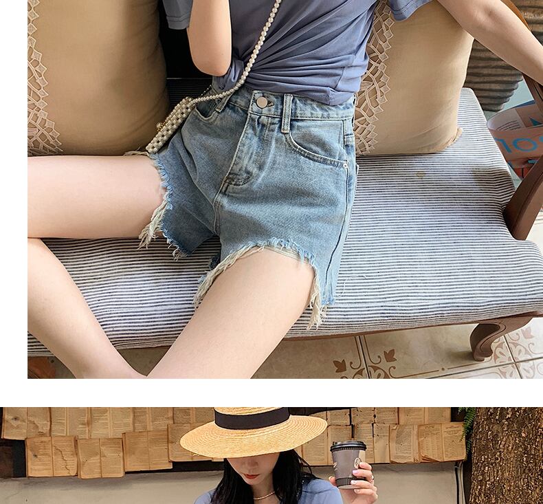 破れたデニムショートパンツレディースハイウエスト一言不規則ルーズワイドレッグ2020夏新作ライトカラーオールマッチパンツ ハイウェスト サマー 夏物 ショーツ ブルマー ワイドパンツ youqi45457377525