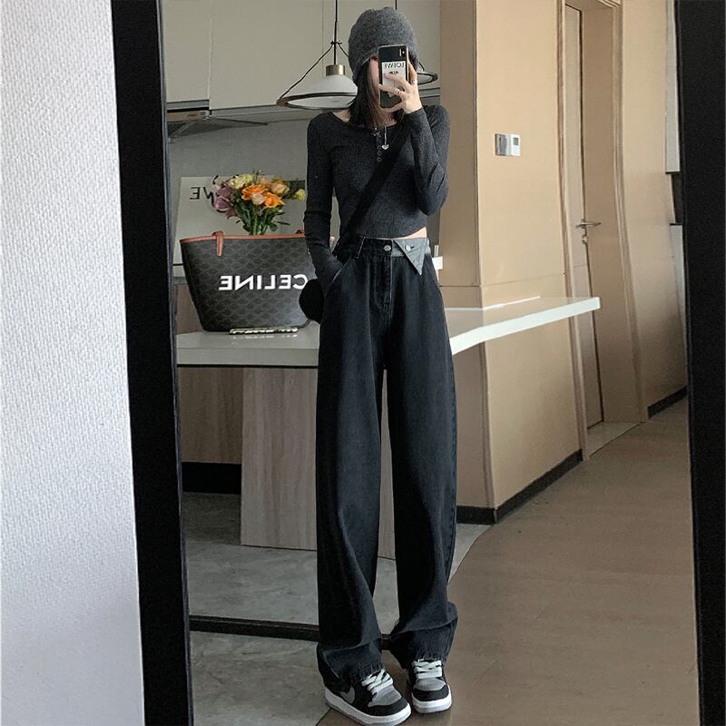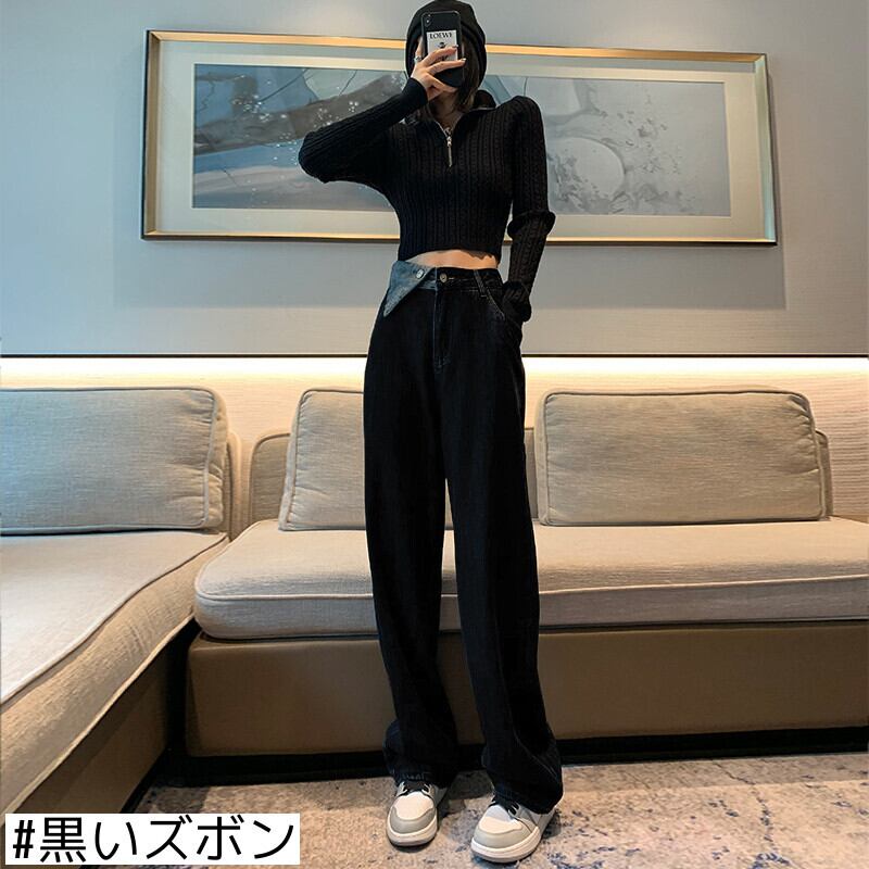 グレージーンズレディース春秋ストレートレディースワイドレッグ2021ウエストルーズモップパンツ スプリング 春物 オータム 秋物 ワイドパンツ youqi58733744240