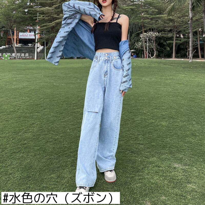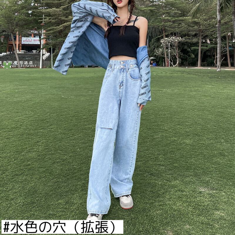 -ウエストの破れたジーンズ女性の足の広いドレープ夏の薄いセクション2021新しいルーズストレートチューブ薄いモップパンツ サマー 夏物 youqi97096491804