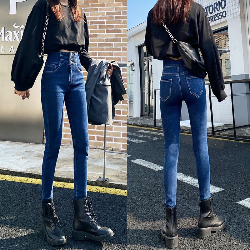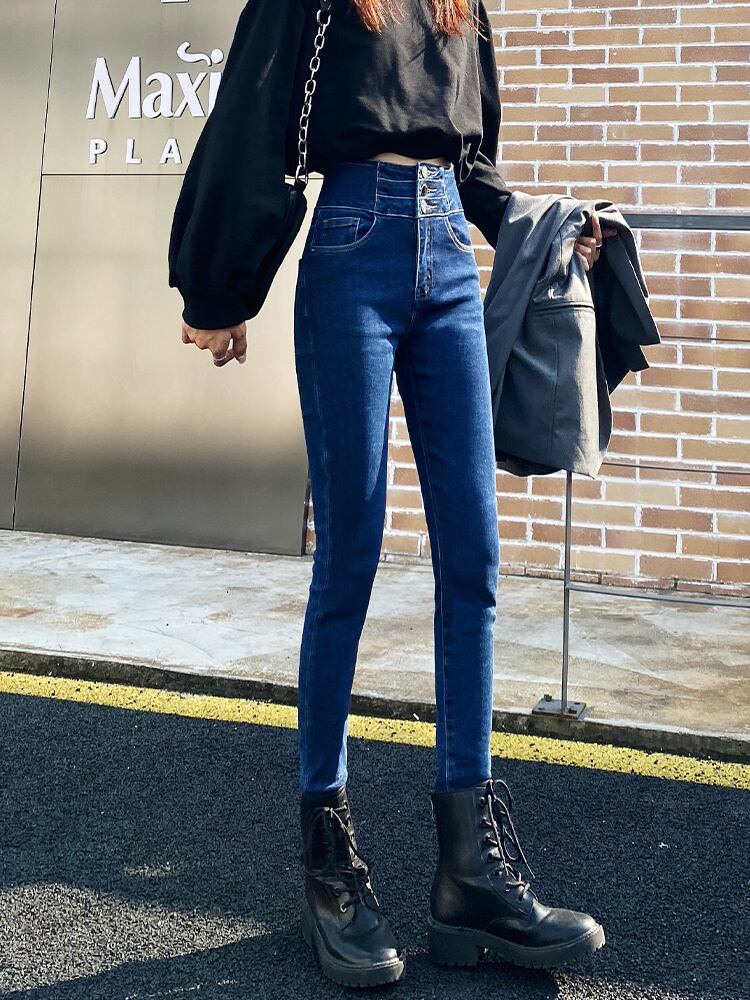 スリーブレストジーンズレディース超ハイウエストスリム伸縮性スリムスモールフットオールマッチタイトペンシルパンツ冬アウター エラスティック ウィンター 冬物 youqi98536416334