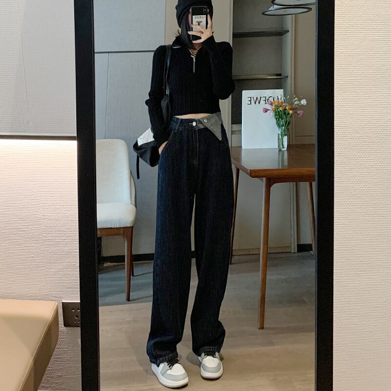 ウエストフリースジーンズレディース秋冬ストレートルーズ2021新作大サイズ秋ワイドレッグデザインパンツ 大きめサイズ オータム 秋物 ウィンター 冬物 youqi34676496210