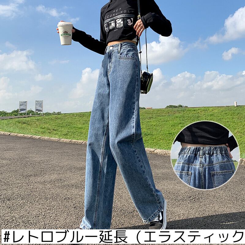 ウエストワイドレッグパンツ伸縮性ウエストジーンズレディースルーズドレープ初秋の婦人服2021新作スリムストレートパンツ エラスティック オータム 秋物 ワイドパンツ youqi93931089281