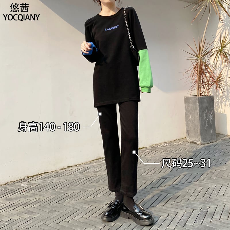 ブラックスモールストレートジーンズレディース2020年秋新作オールマッチルーズ8点スモールハイウエストシガレットパンツ ハイウェスト オータム 秋物 youqi36878563992