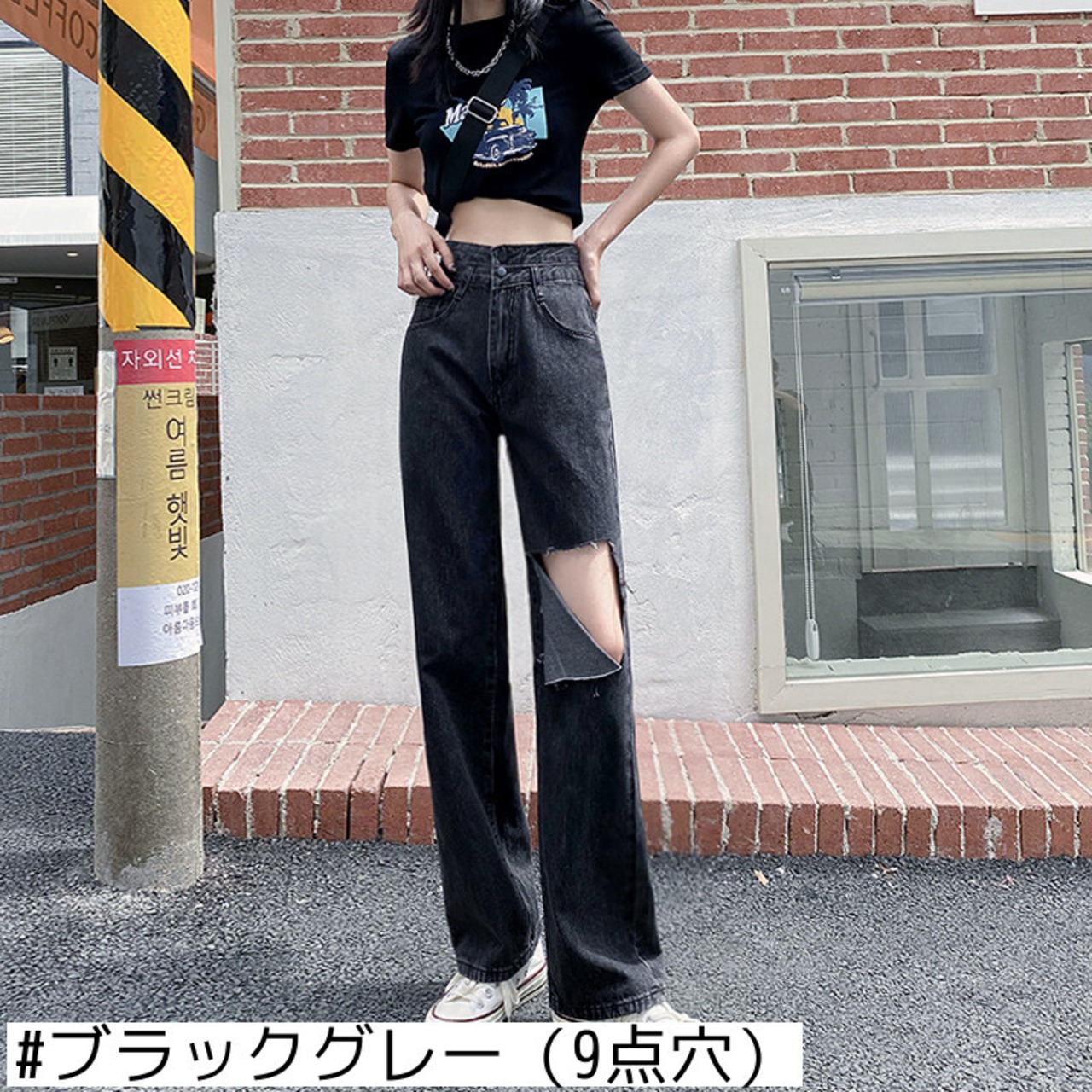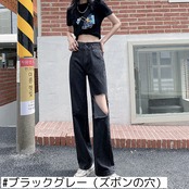ブラックグレーリップドジーンズレディースワイドレッグルーズ2021夏新作スタイルスリムストレート乞食ハイウエストモップパンツトレンド ハイウェスト サマー 夏物 youqi17493869432