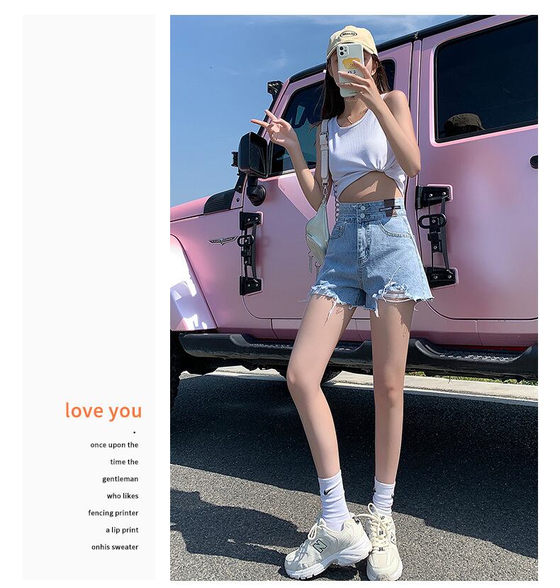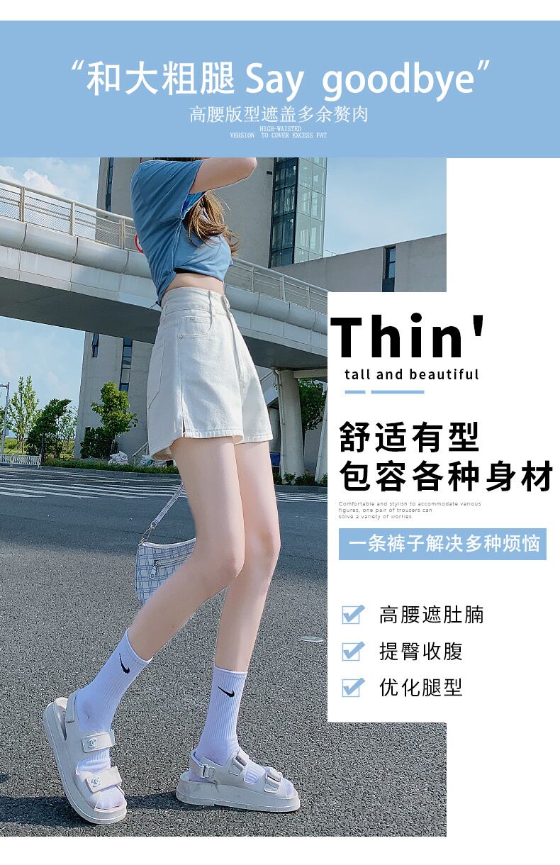 ホワイトデニムショーツ女性の夏の薄片は細くて足の広い一言でオールマッチハイウエストスプリットルーズホールタイド ハイウェスト サマー 夏物 ブルマー youqi77472784940