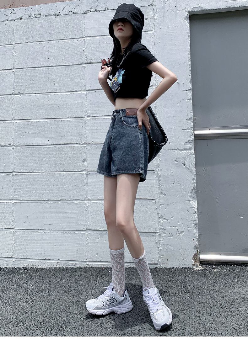 ウエストデニムショーツレディースサマー薄切片オールマッチルーズ2021ニュースタイルシンワイドレッグAラインネットレッドパンツトレンド 夏物 ブルマー youqi75219629494