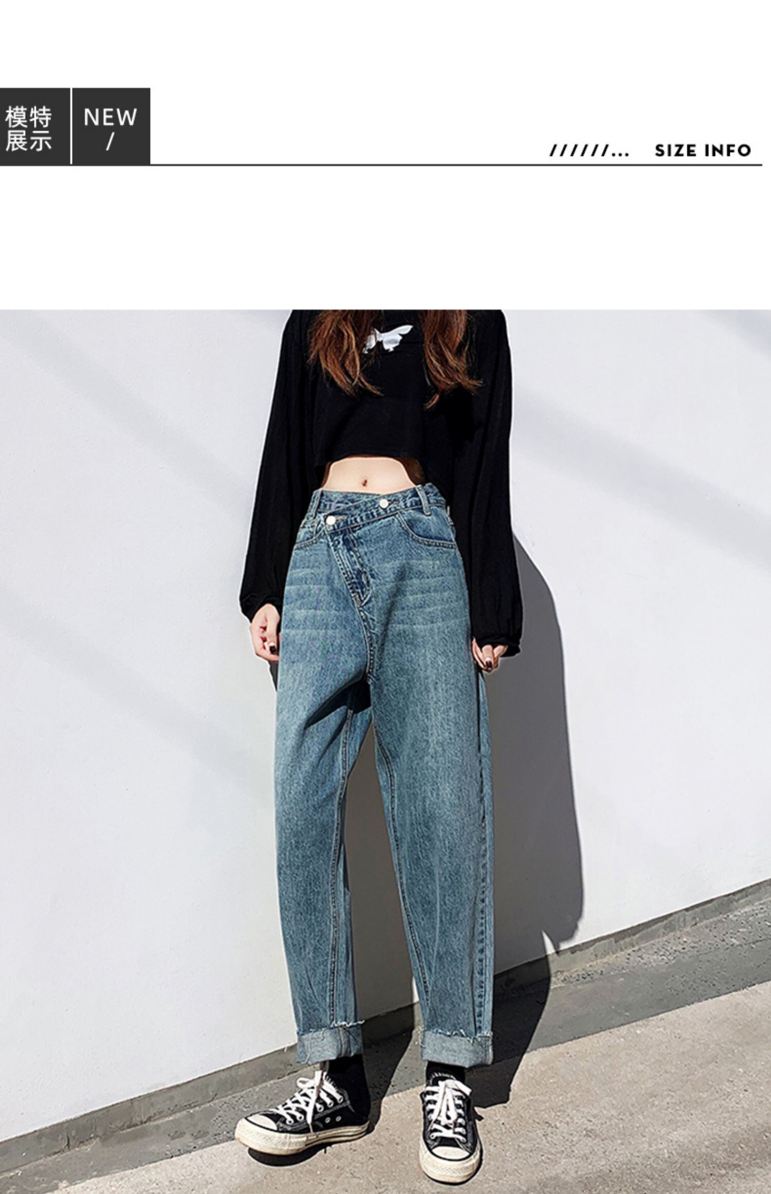 ルーズラディッシュジーンズレディースハイウエストストレート2020斜めバックルレトロ9点秋ドレスドレープハーランパパパンツ ハイウェスト オータム 秋物 youqi76744336191