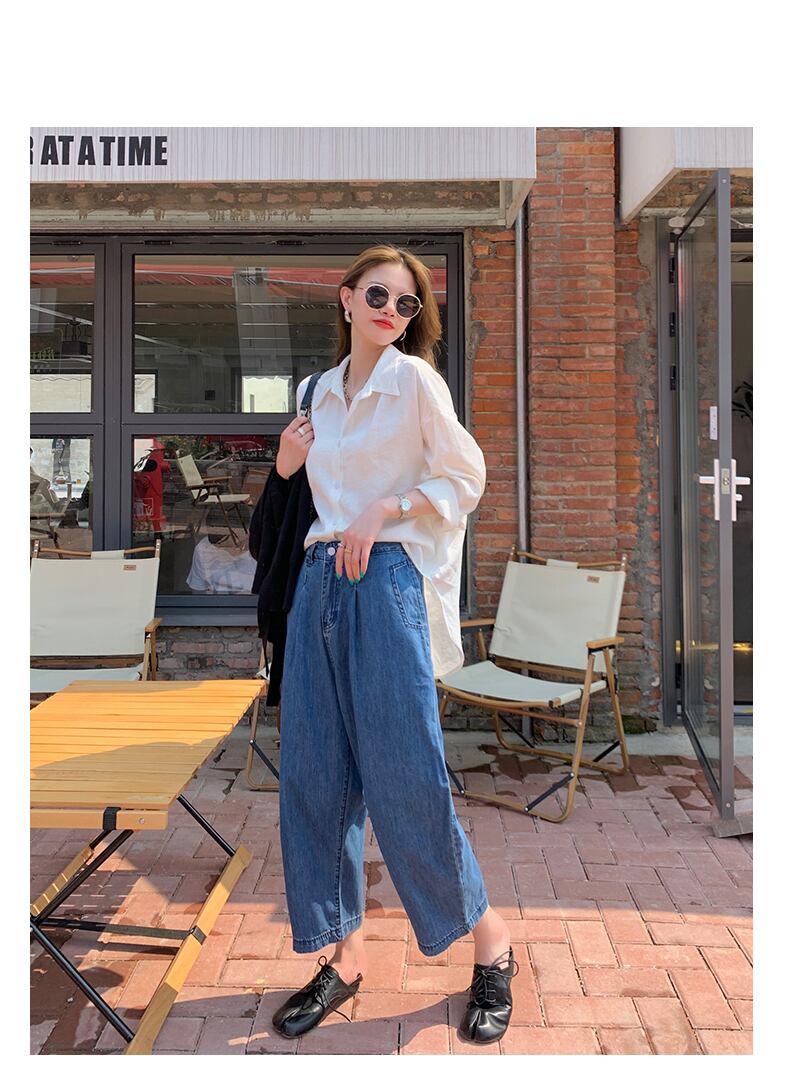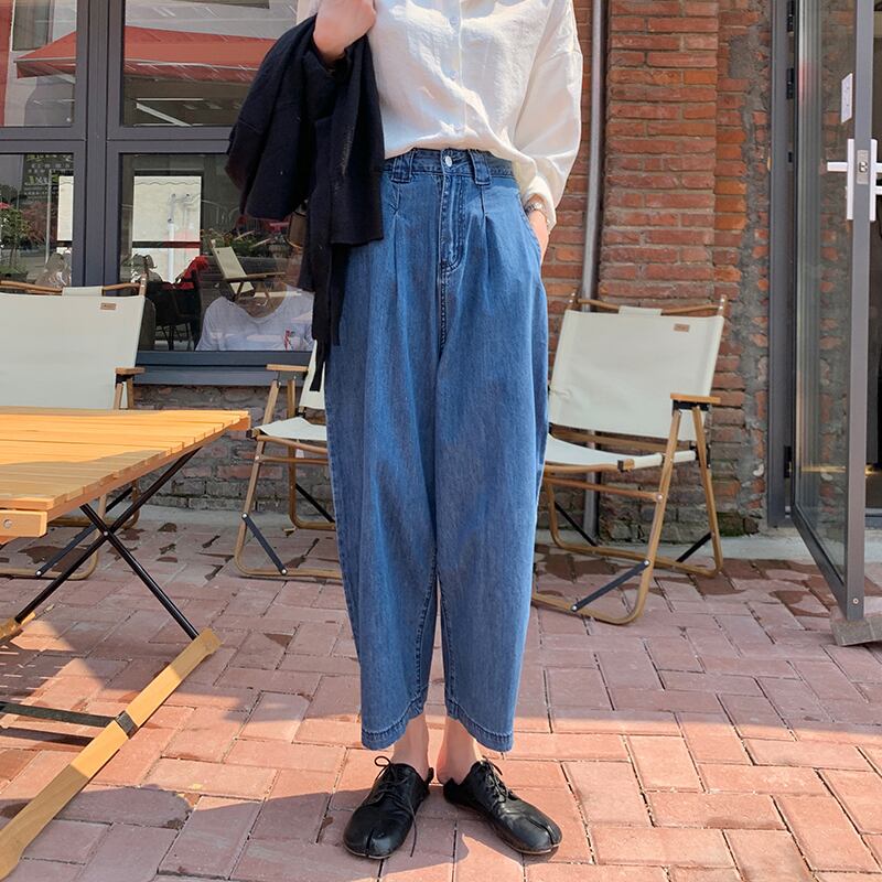 ダークブルーのバナナジーンズの女性の夏の薄いセクションオールマッチルーズワイドレッグ2021新しいハイウエストおばあちゃんパンツトレンド ハイウェスト サマー 夏物 youqi99150533529