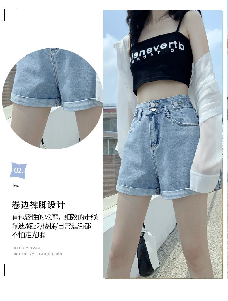 デニムショーツレディースサマーシンセクション2021ニュールーズオールマッチシンウルトラハイウエストAラインワイドレッグパンツトレンディイン ハイウェスト 夏物 ブルマー youqi47701365424