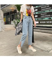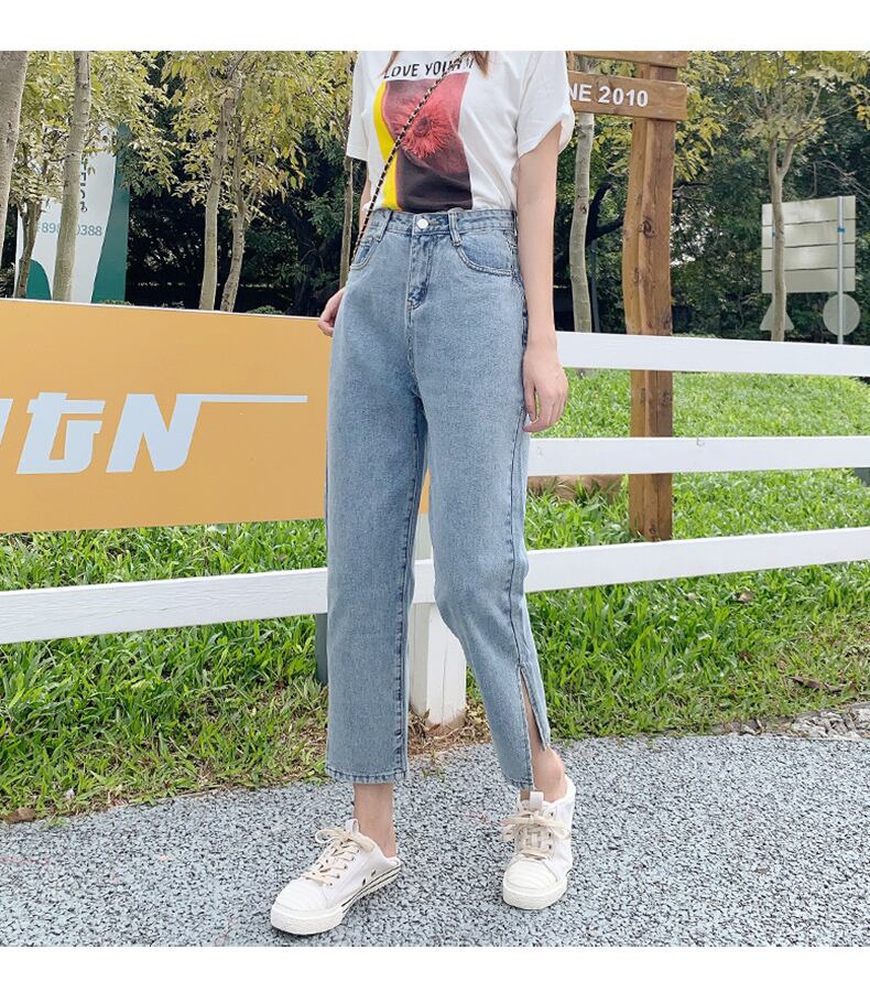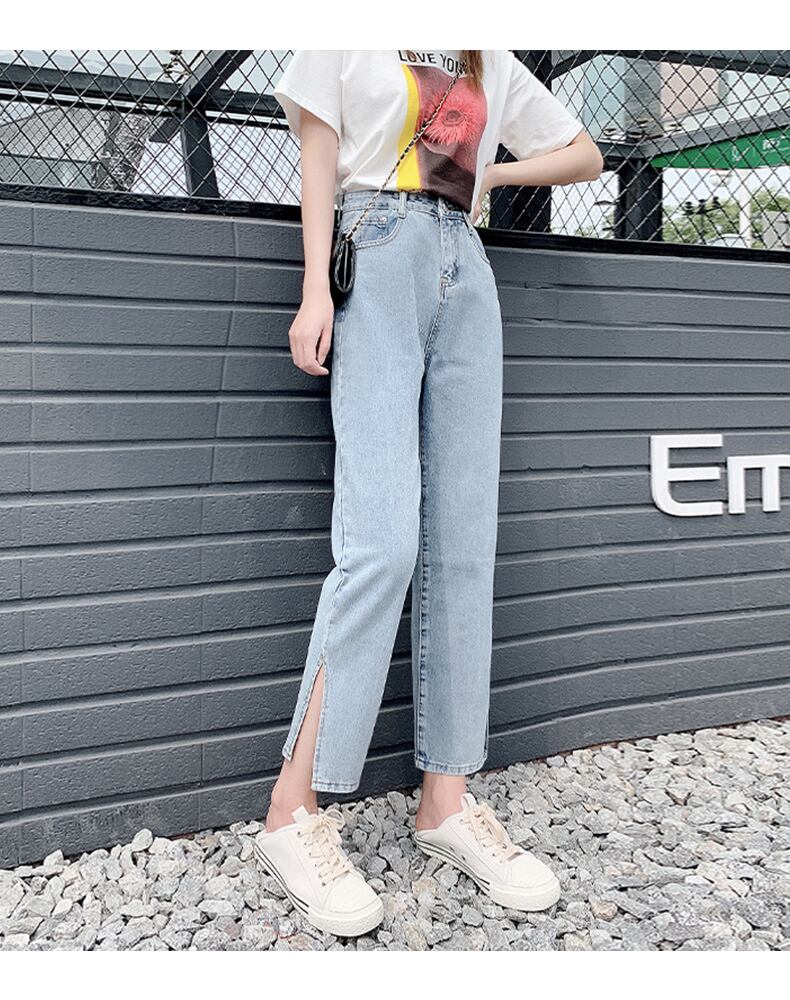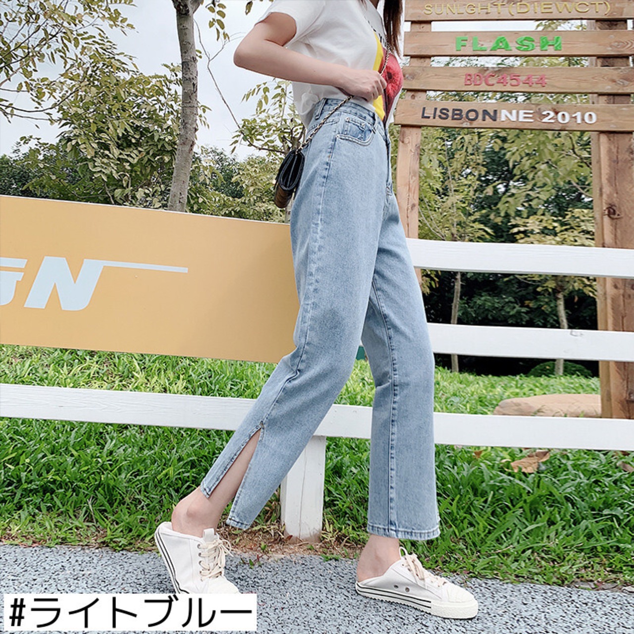 サイドスリットジーンズウィメンズ2020秋冬新作ストレートハイウエストスリムケッドライトブルーマイクロフレアパンツ ハイウェスト レッド オータム 秋物 ウィンター 冬物 youqi57725255917