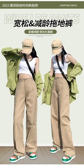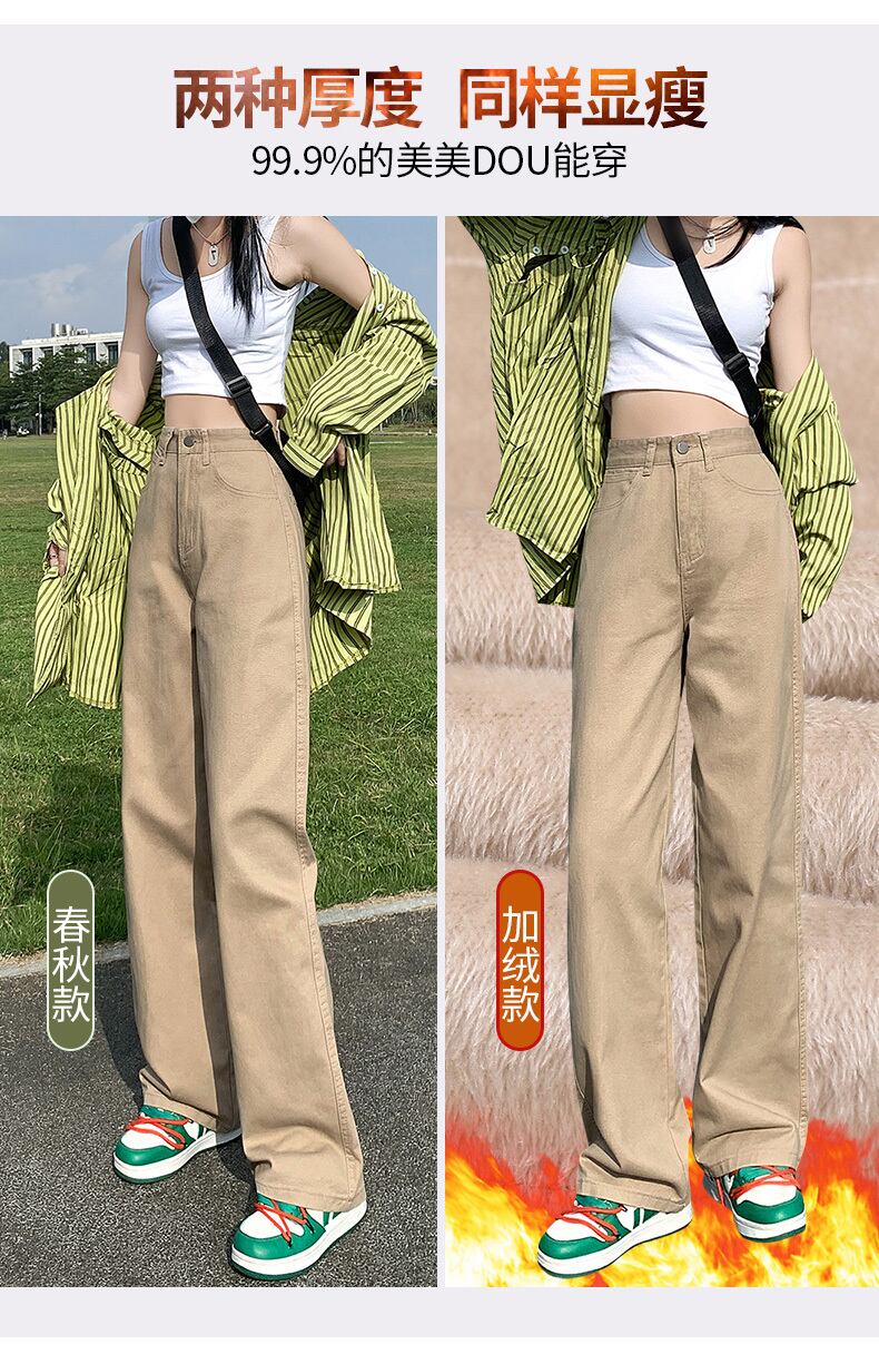 カーキワイドレッグジーンズレディース秋冬フリースルーズ2021年新作ハイウエストロングトールモップパンツ オータム 秋物 ウィンター 冬物 youqi72026667800