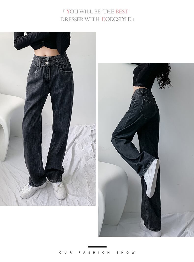 グレーのハイウエストジーンズの女性の春と秋のストレートレッグシックな香港風味のパンツ レッド スプリング 春物 オータム 秋物 youqi44756657414