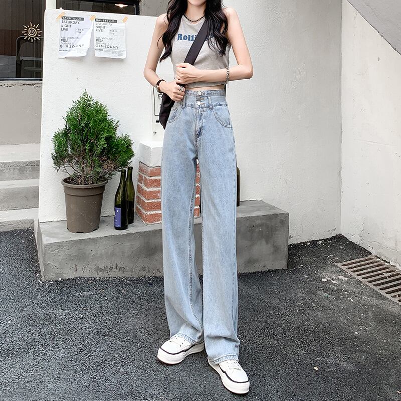 超ハイウエストジーンズレディースサマー薄手のワイドレッグ破れた穴ルーズブレストデザインは薄手のストレートレッグモップパンツ 夏物 youqi5423913853