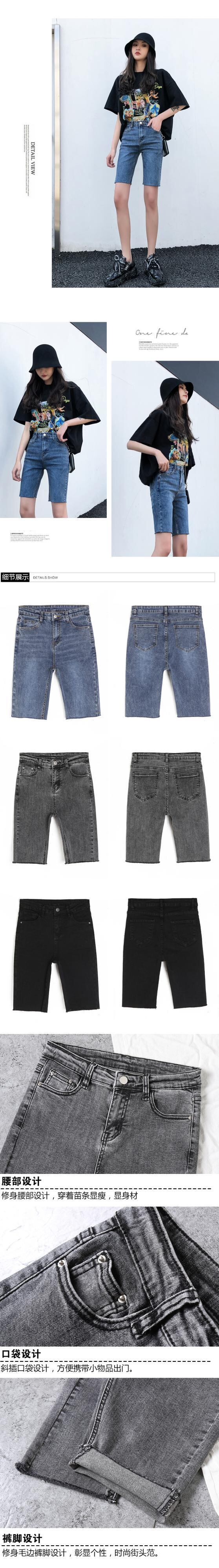 ブラックデニムショーツレディース5点パンツ2020年夏新作ハイウエストタイトフィットネットレッドライディングパンツは薄くてトレンディ サマー 夏物 ブルマー youqi96339142593