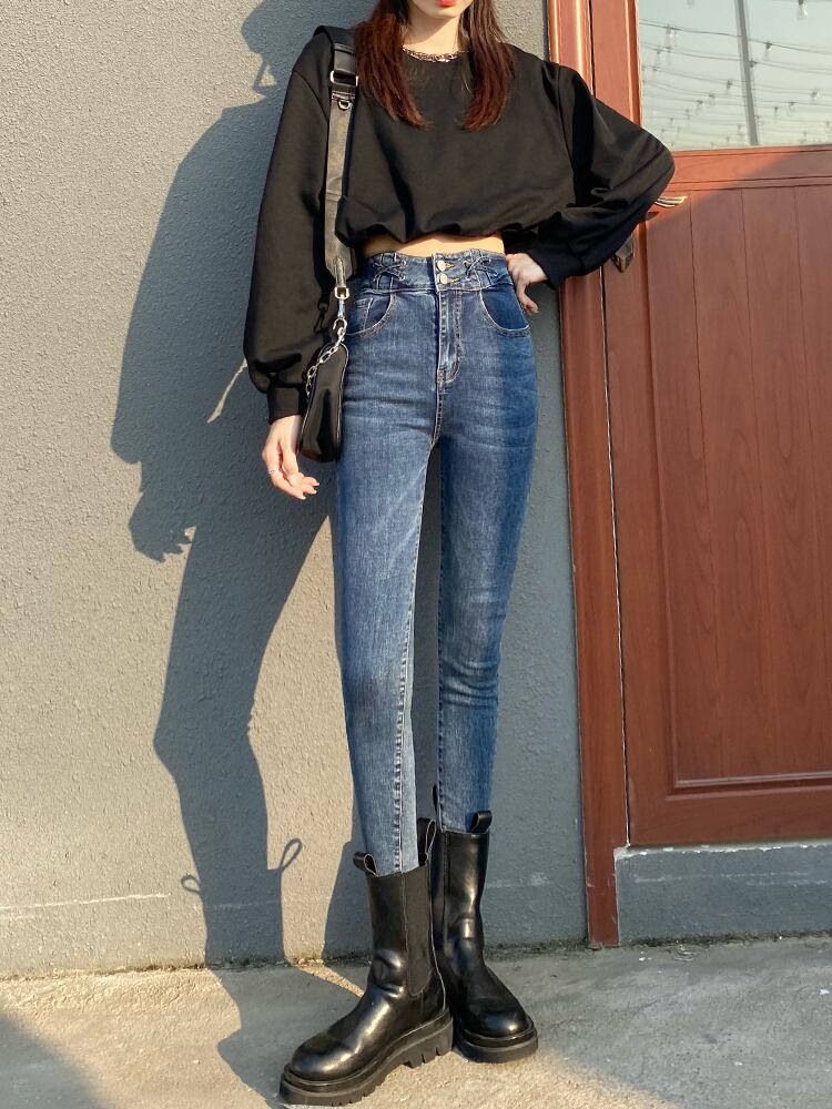 2020ジーンズレディースハイウエストショーシンスキニー秋冬小足新作コロケーションマーティンブーツペンシルパンツアウターウェア ハイウェスト 靴 シューズ オータム 秋物 ウィンター 冬物 youqi3480152384