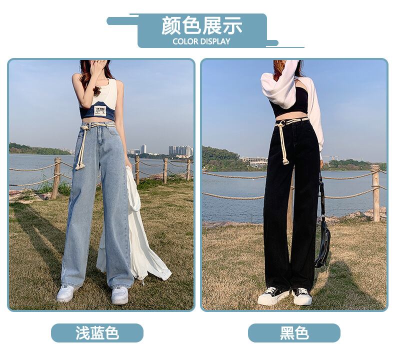 ライトブルージーンズレディースワイドレッグルーズ2022春夏新作オールマッチストレートハイウエストデザインモップパンツ ハイウェスト スプリング 春物 サマー 夏物 ワイドパンツ youqi66150232411