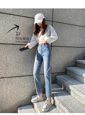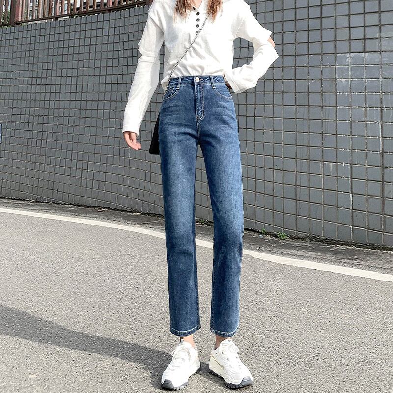 -ウエストジーンズレディースストレート2022年春夏新作ルーズライトカラースモールオールマッチスチューデントシガレットパイプパンツ レッド スプリング 春物 サマー 夏物 youqi36554354843