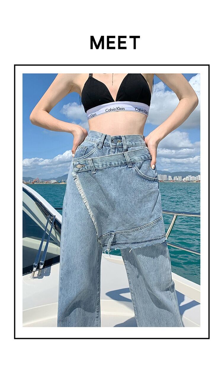 ウエストワイドレッグジーンズレディースドレープローズデザインレディースパンツ春服2022年新ストレートチューブモッピング スプリング 春物 ワイドパンツ youqi94893704084