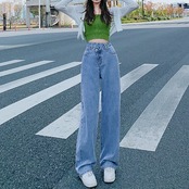 不規則なワイドレッグジーンズの女性の2022年春夏の新しいハイウエストスリムストレートチューブルーズデザインロングパンツ スプリング 春物 サマー 夏物 youqi7671579311