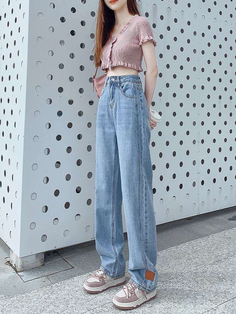 春夏ワイドレッグジーンズレディースドレープ2022ニュースタイルスリミングハイウエストストレートチューブデザインルーズモップパンツ スプリング 春物 サマー 夏物 youqi37905907719