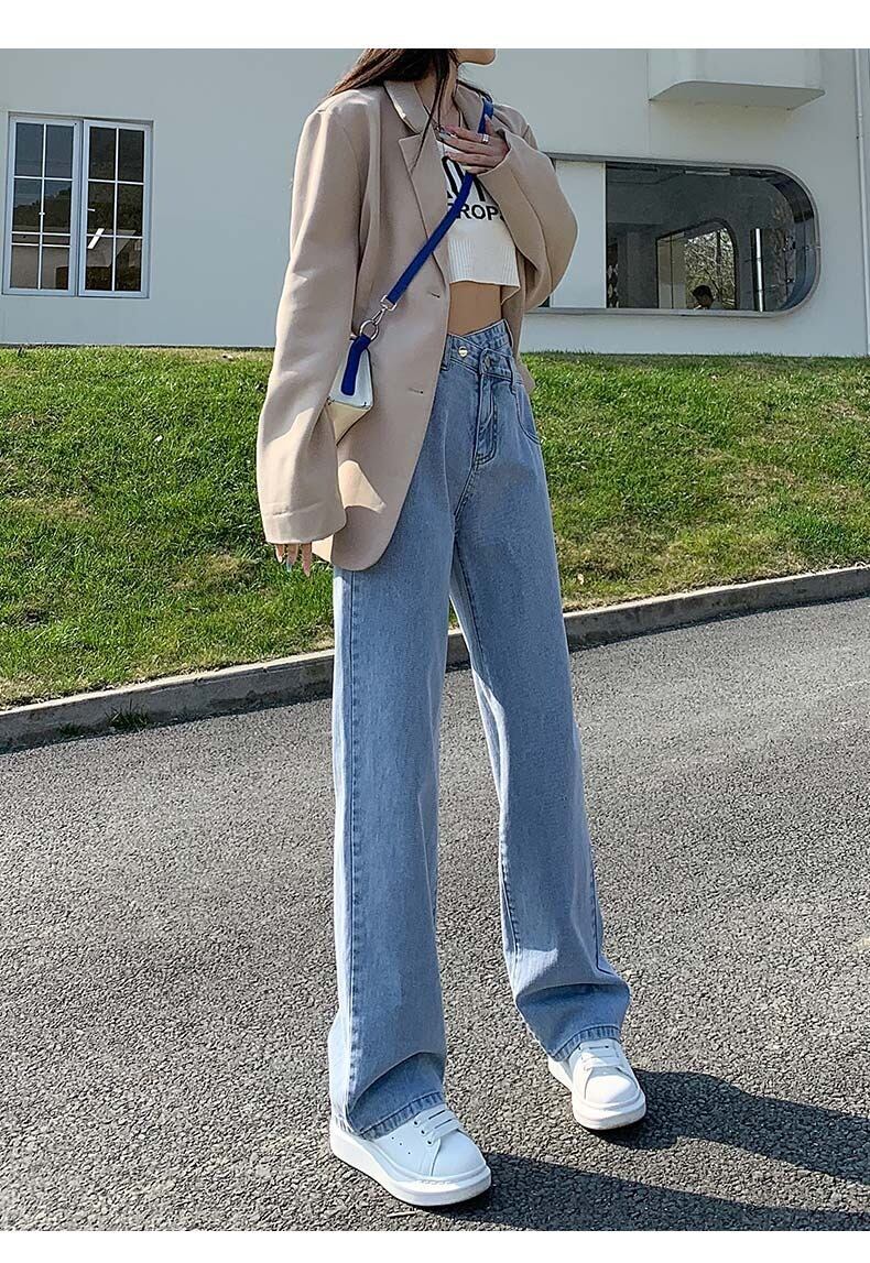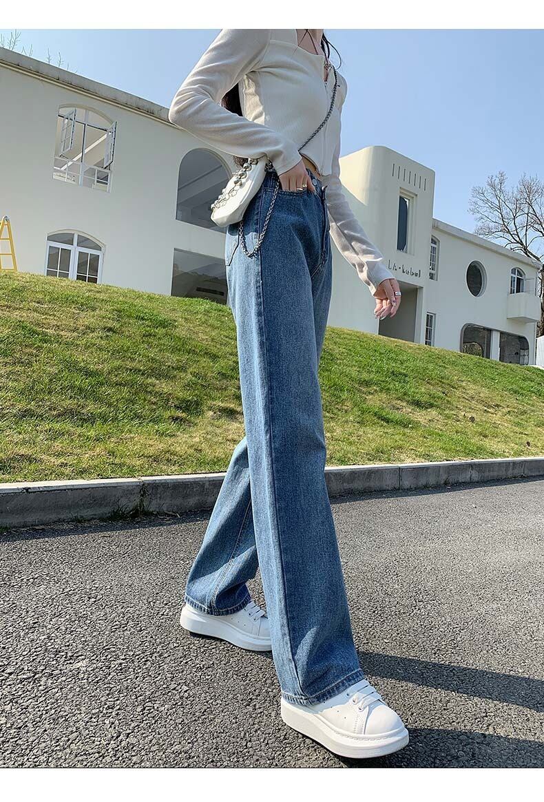 ワイドレッグジーンズレディースイレギュラースプリングハイウエストドレープローズ2022新作スリムストレートレッグモップパンツ 春物 youqi44036808161