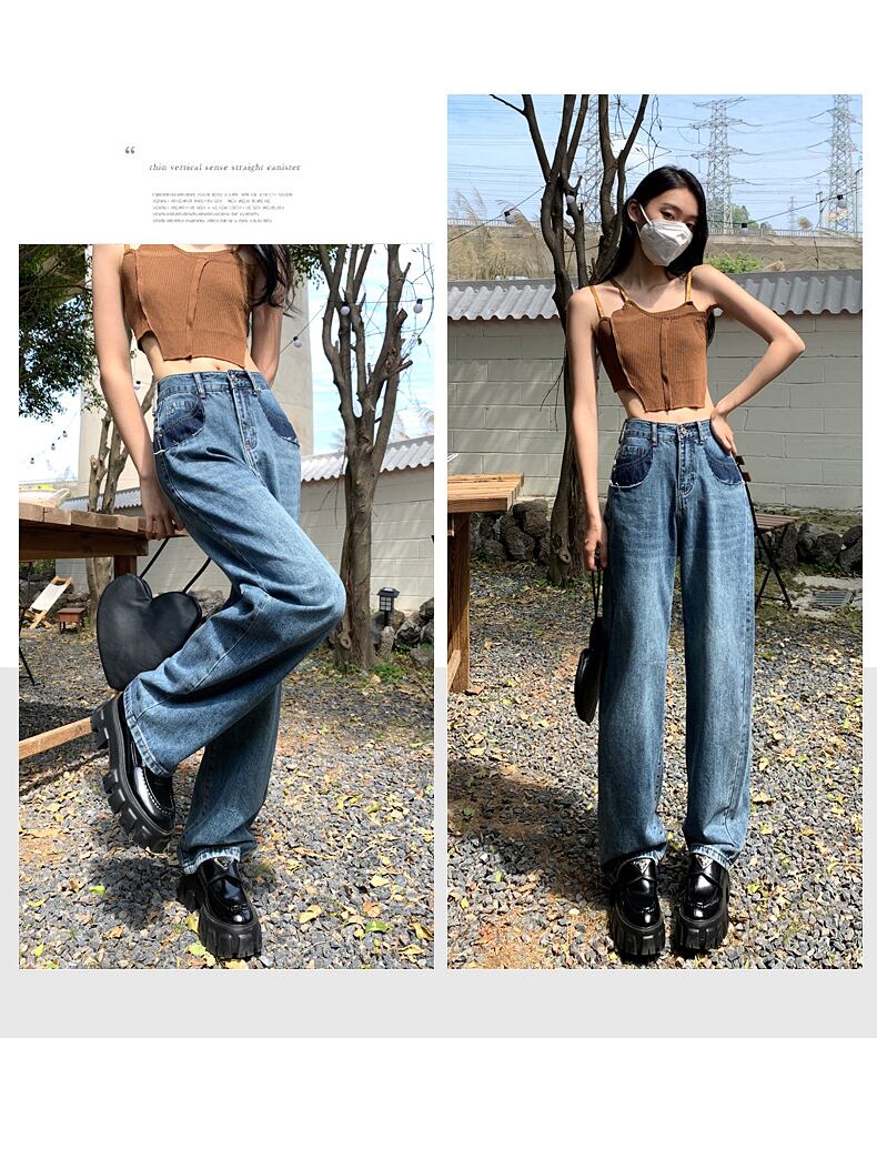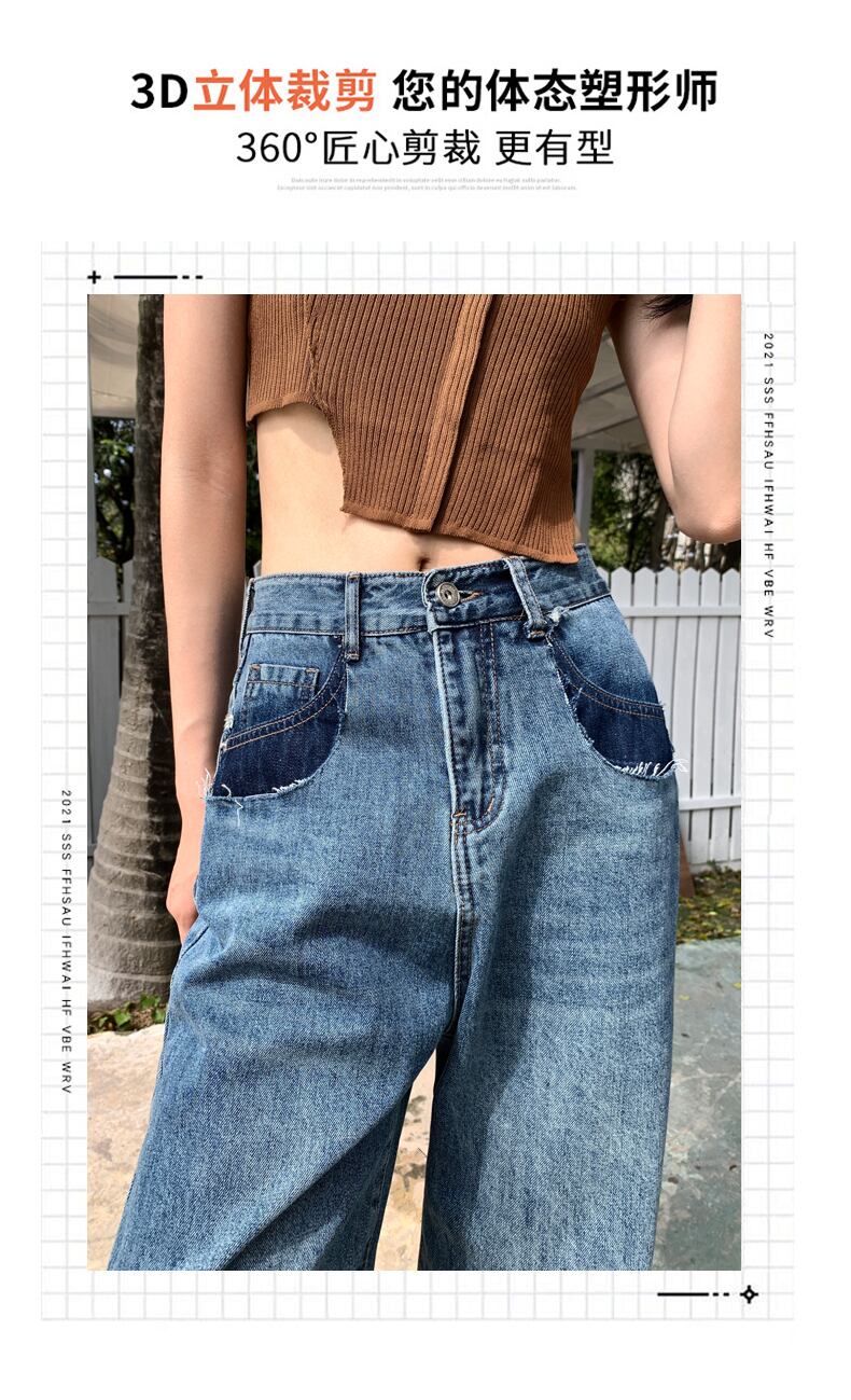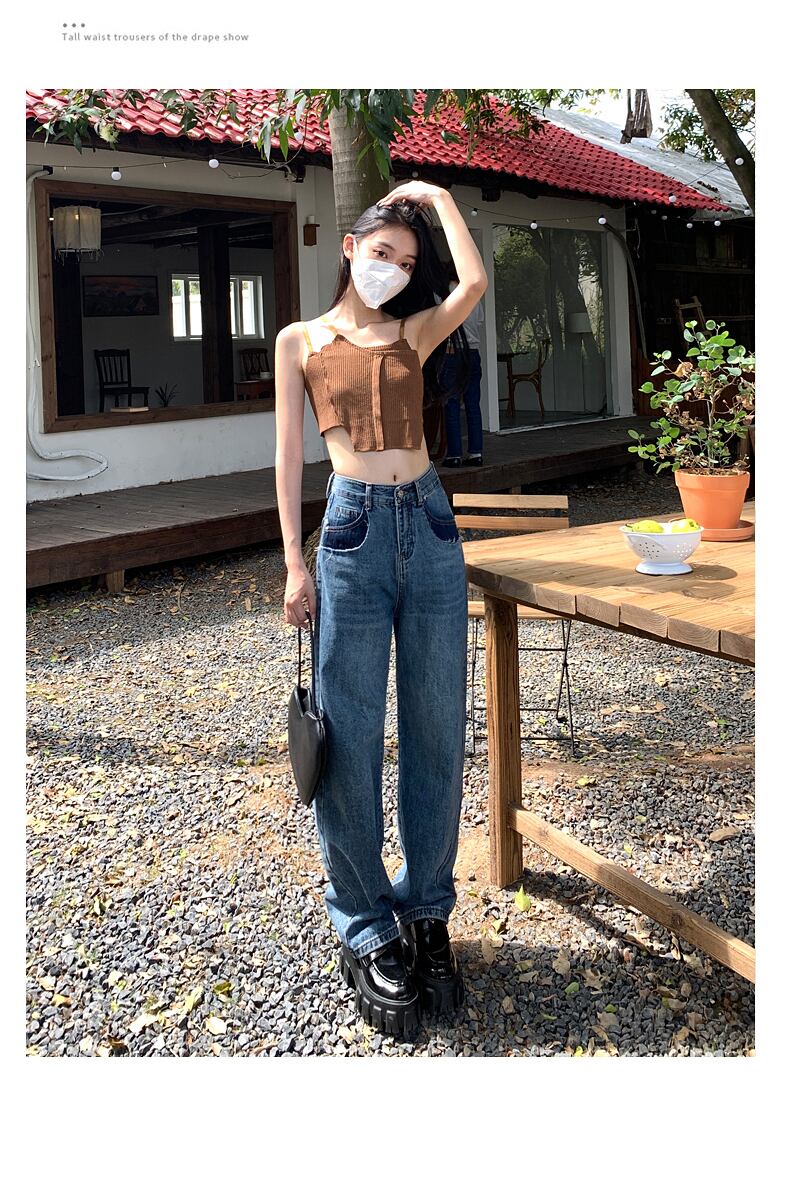 ネットレッドジーンズレディースハイウエストワイドレッグ春服2022新作スリミングドレープデザインセンスモップストレートパンツ スプリング 春物 youqi93549128269