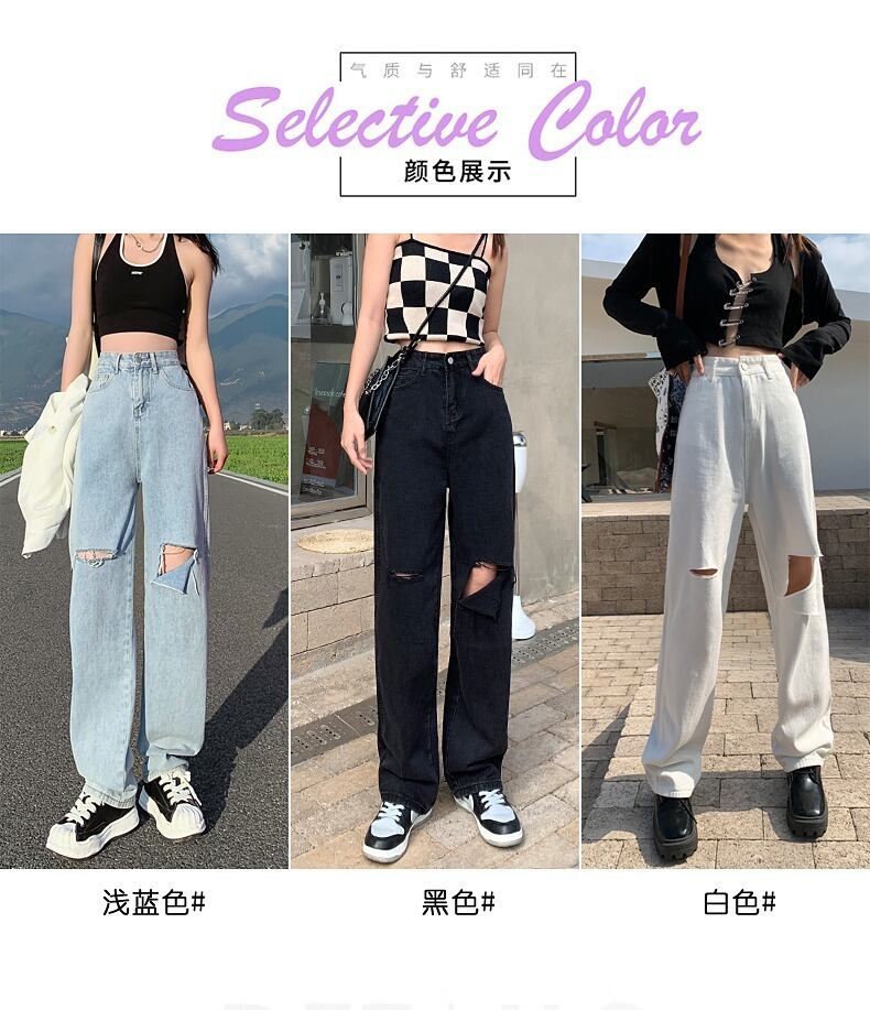 破れたジーンズの女性の足の広いドレープローズ2022年の新しい夏の薄いオールマッチストレートレッグモップパンツ サマー 夏物 youqi63065979569