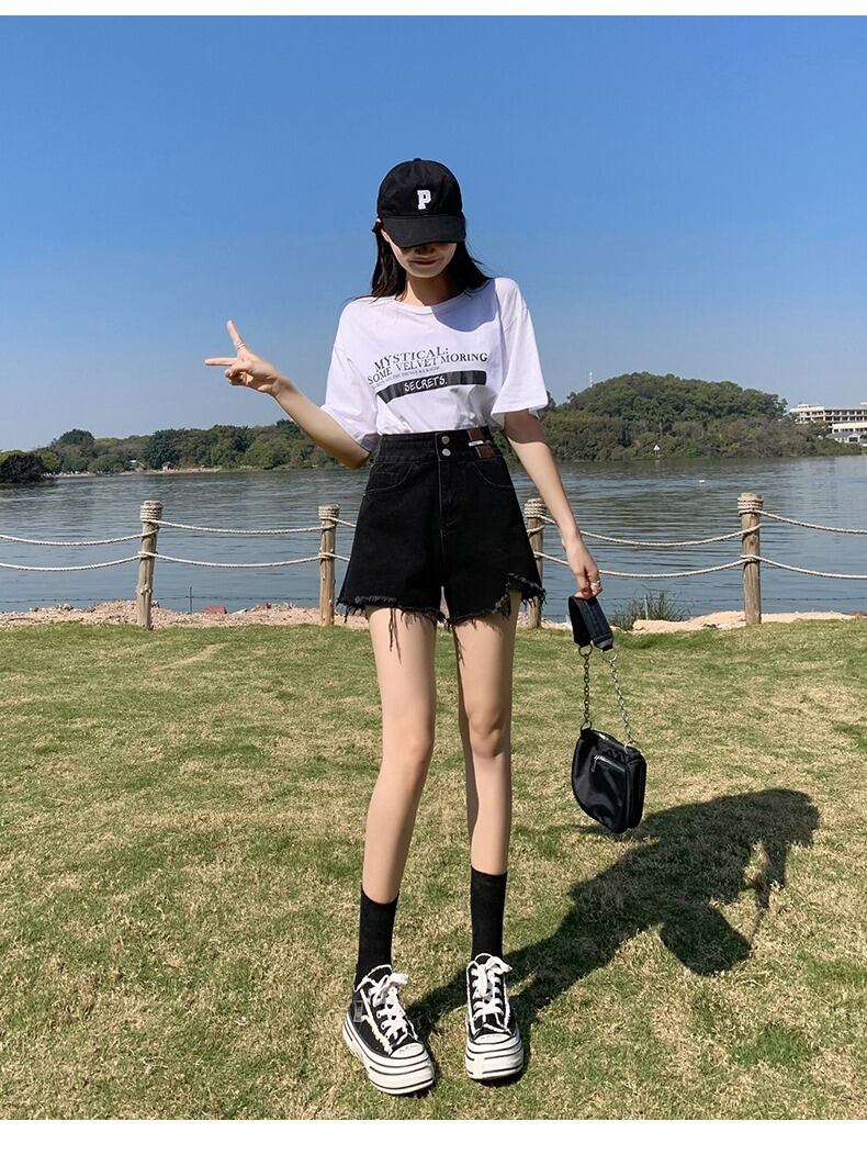 デニムショーツレディースルーズサマー2022ニュースタイルシンで用途の広いハイウエストブラックワイドレッグパーソナリティパンツ薄切片 夏物 ブルマー youqi70265980227