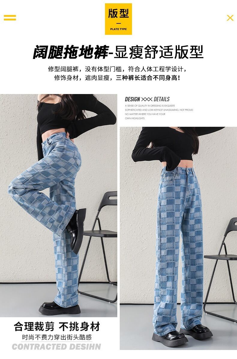 ウエストワイドレッグジーンズレディースジャカード痩身2022年夏新作ハイストリートストレートモップパンツ サマー 夏物 ワイドパンツ youqi98581286557