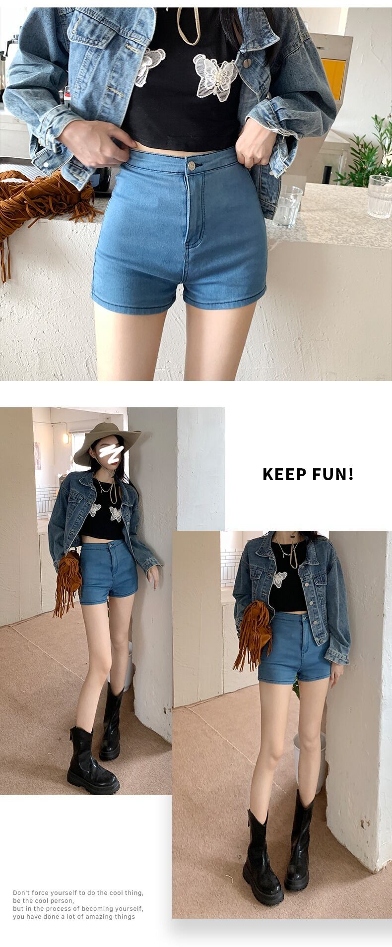 ブラックデニムショーツレディースサマーエラスティック2022新作細いaラインスーパーショーツハイウエストパンツタイド ハイウェスト 伸縮 夏物 ブルマー youqi56641239780