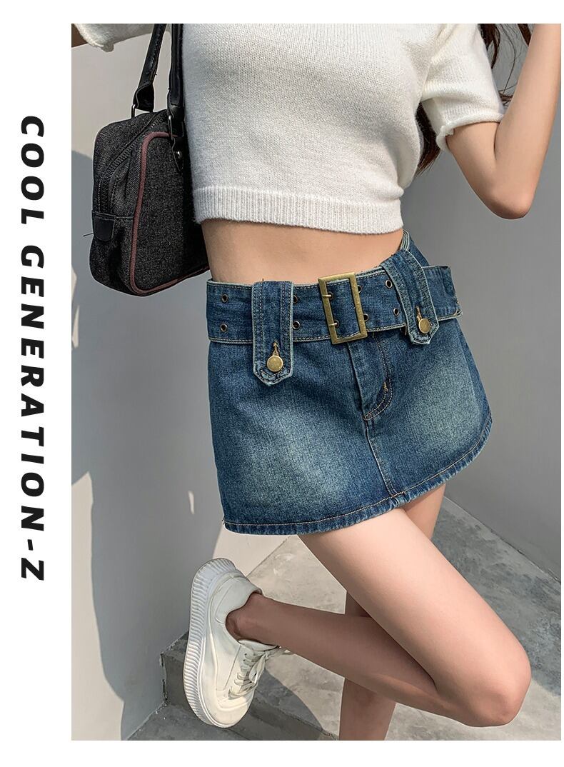 レトロデニムショートスカートレディースハイウエストAラインオールマッチレディース2022年春夏新パッケージヒップショーツ薄手 ハイウェスト スプリング 春物 サマー 夏物 ブルマー youqi59040516564