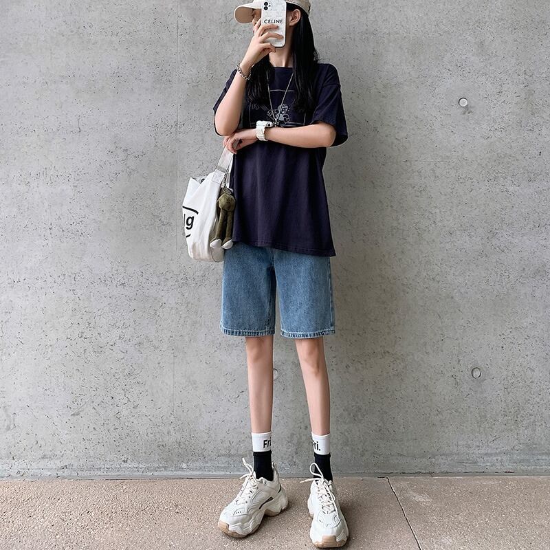ファイブポイントパンツレディースストレートルーズスチューデント2022新作シンハイウエストデニムショートパンツミドルパンツワイドレッグタイドイン ショーツ ブルマー youqi62095916885
