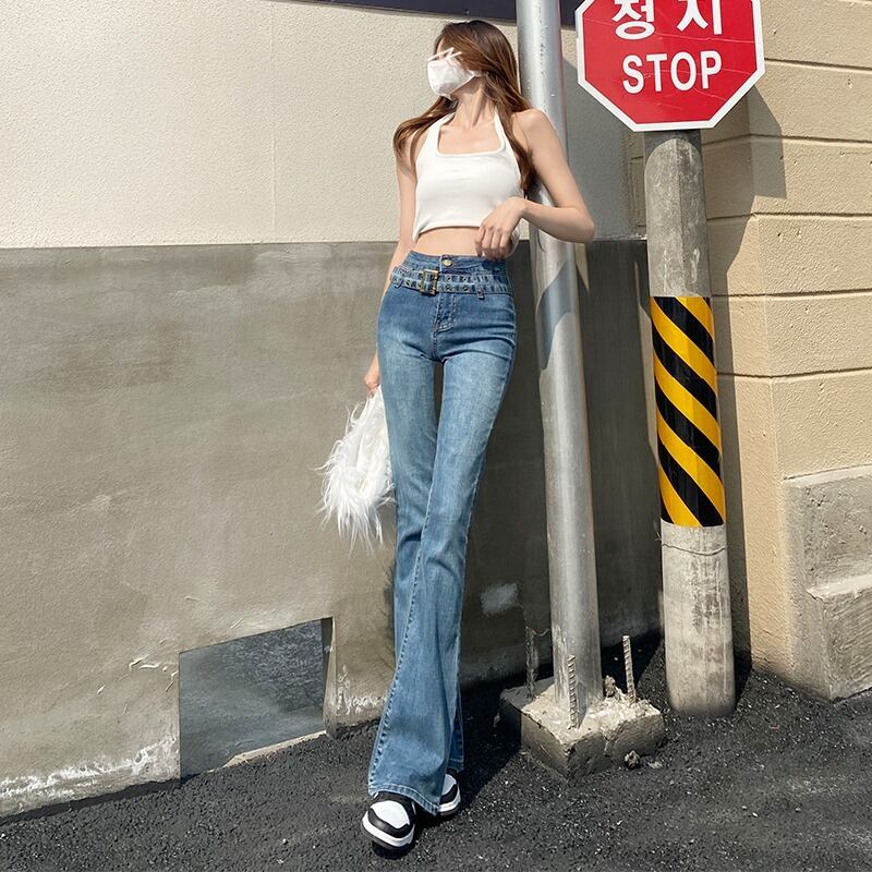 -ウエストウェルトジーンズスリムフィット2022年春夏新作スリミングデザインニッチハイストリートモップパンツトレンド スプリング 春物 サマー 夏物 youqi84965214668