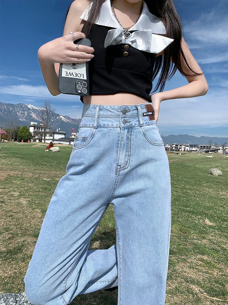 夏のワイドレッグジーンズ女性ルーズドレープ2022新しいライトカラー薄いハイウエスト薄いモップパンツ春と夏 ハイウェスト スプリング 春物 サマー 夏物 ワイドパンツ youqi96682324282