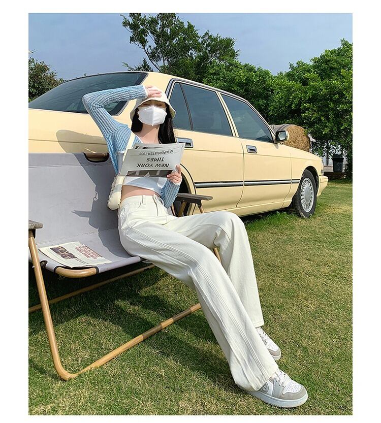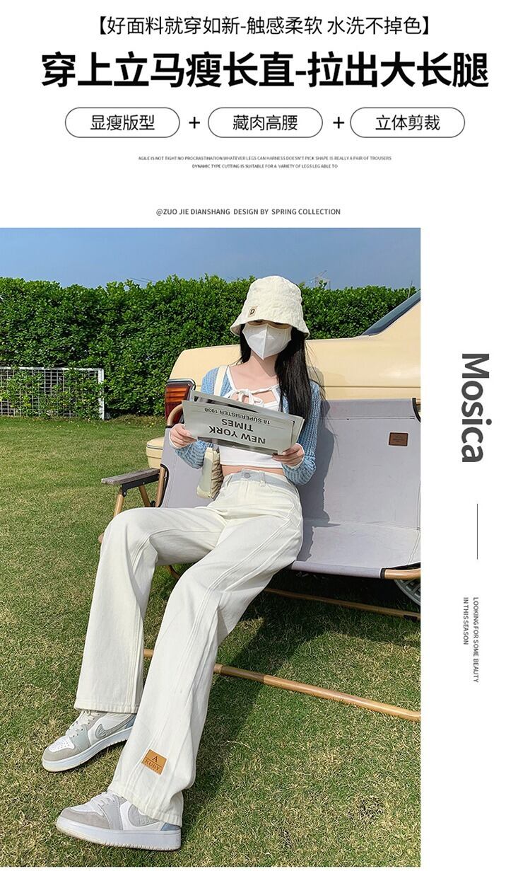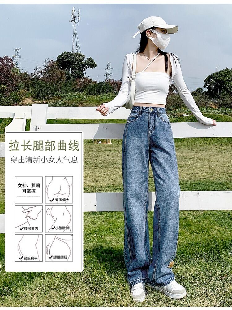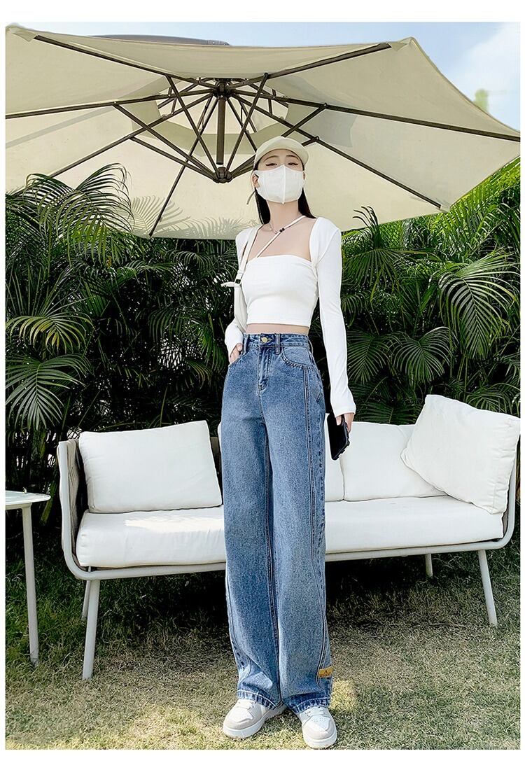 ウエストワイドレッグパンツネットレッドジーンズレディースルーズドレープ2022春夏新作スタイル薄手モップストレートロングパンツ スプリング 春物 サマー 夏物 ワイドパンツ youqi67777238174