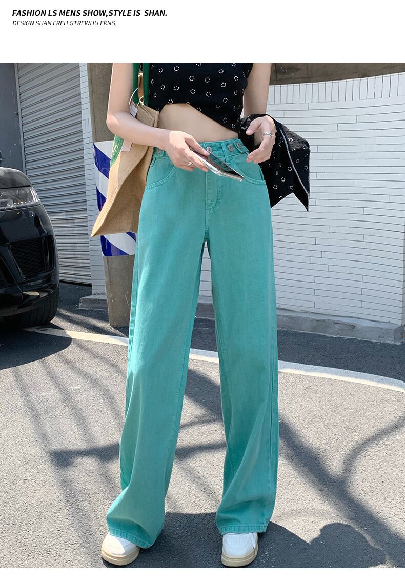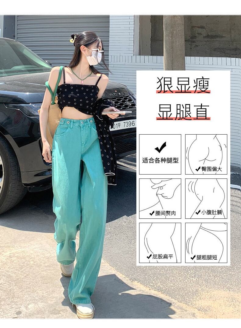 -ウエストワイドレッグパンツジーンズレディースサマーシンセクション2022ニューグリーンドレープローズストレートレッグモップパンツ 夏物 youqi89401077482