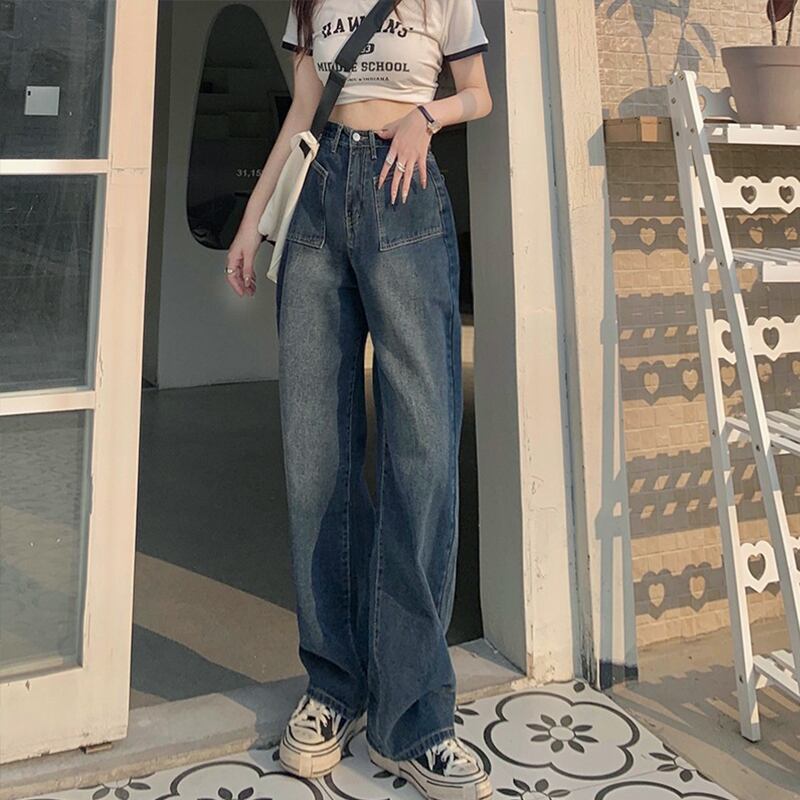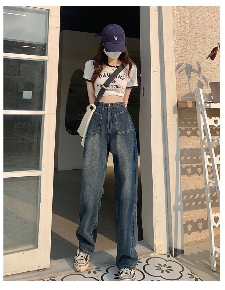 レトロジーンズレディースサマーシンカレッジスタイルワイドレッグ2022ニュードレープローズモップストレートパンツ 夏物 youqi87971682409