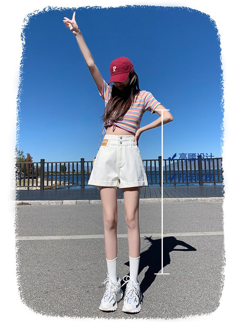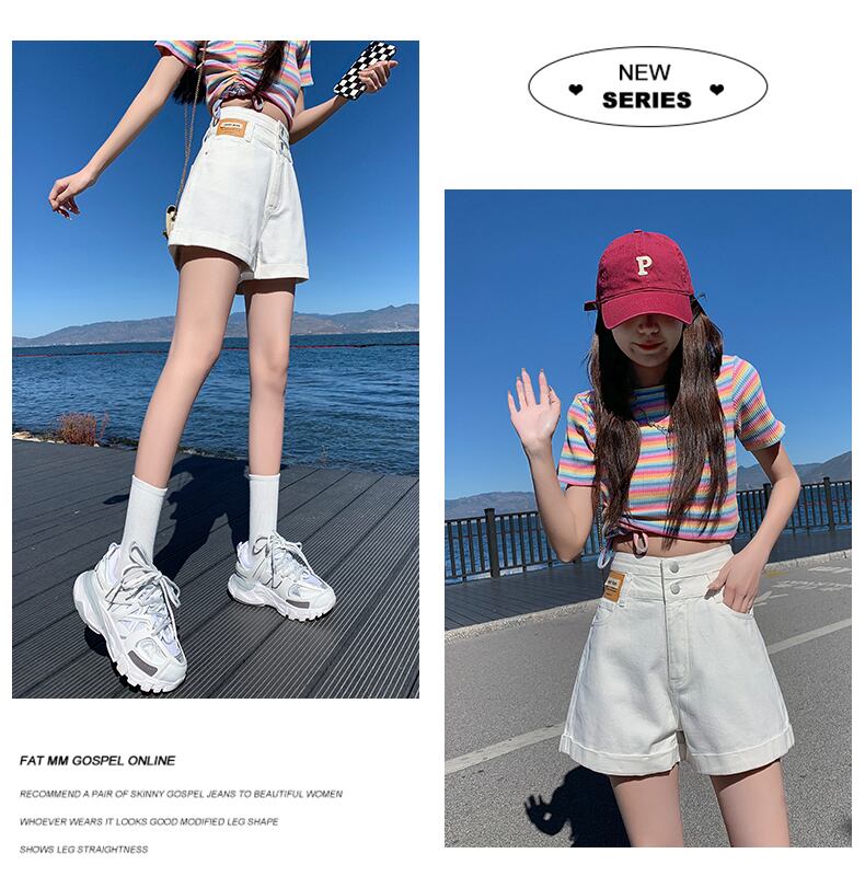 サマーデニムショーツレディースハイウエストaラインスリムで用途の広いルーズ2022ニューホワイトカーリーダブルボタンパンツ 夏物 ブルマー youqi37708791263