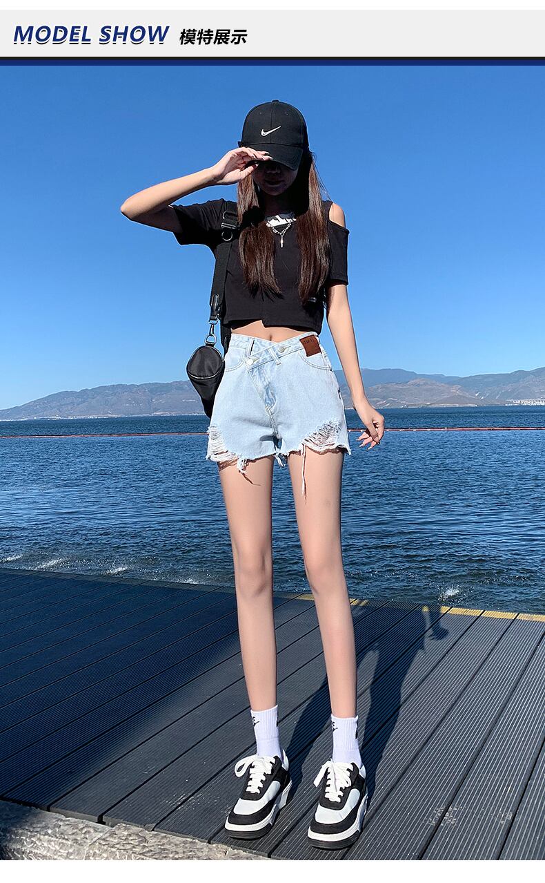 夏のワイドレッグデニムショーツ女性のハイウエストa-word不規則で薄くて用途の広い2022年新入生パンツタイドイン サマー 夏物 ブルマー youqi58999108977