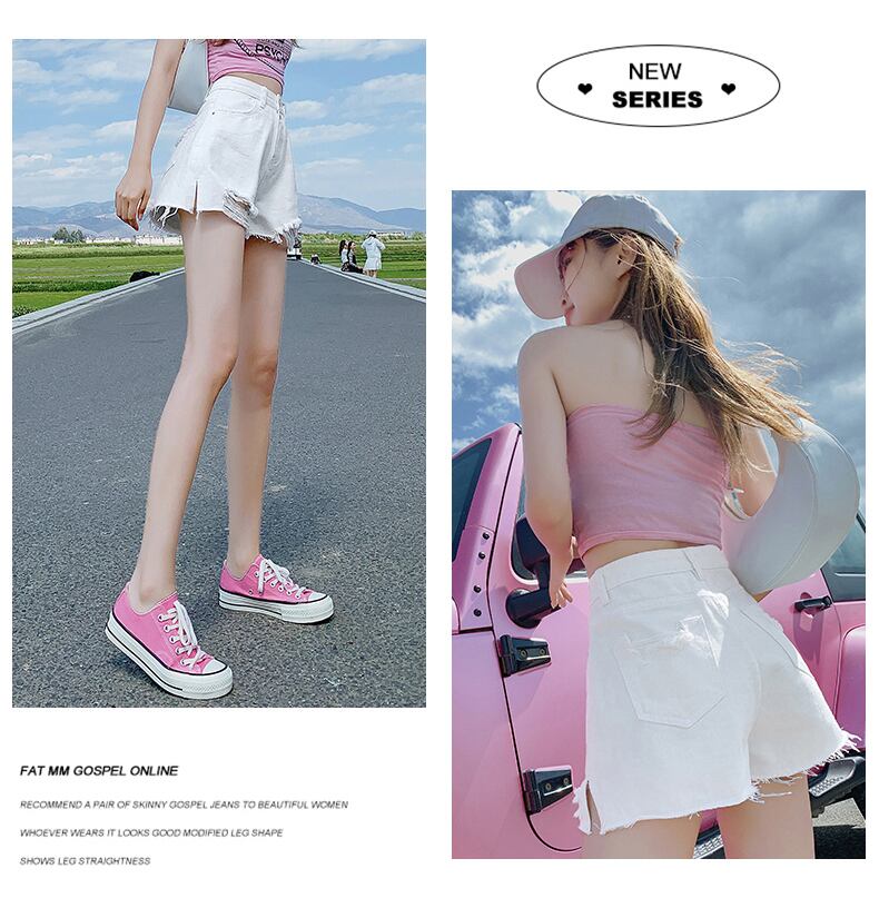 スリットデニムショートパンツ女子2022年夏新作リッピングリッピングルーズオールマッチスチューデントハイウエストワイドレッグパンツ サマー 夏物 ショーツ ブルマー youqi88074853534