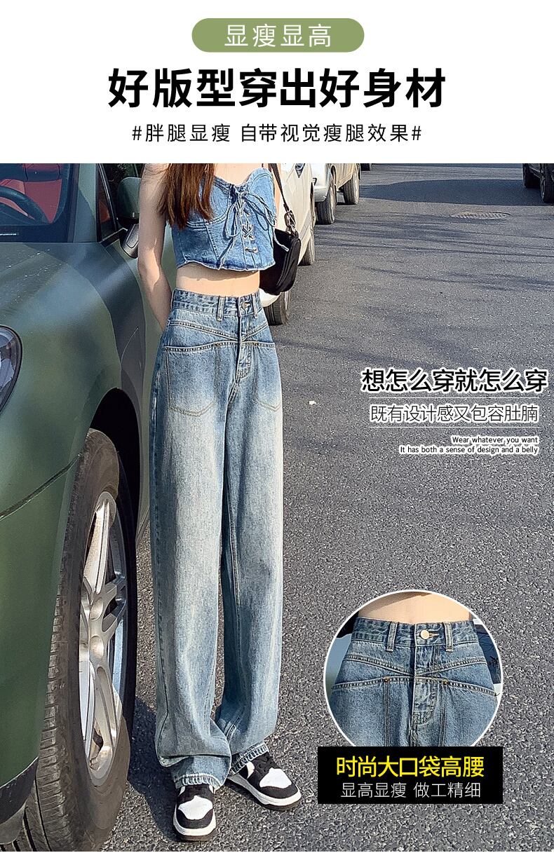 -ウエストワイドレッグパンツジーンズレディースドレープローズ2022夏新作スリミングデザインニッチモップパンツ サマー 夏物 youqi27699592436