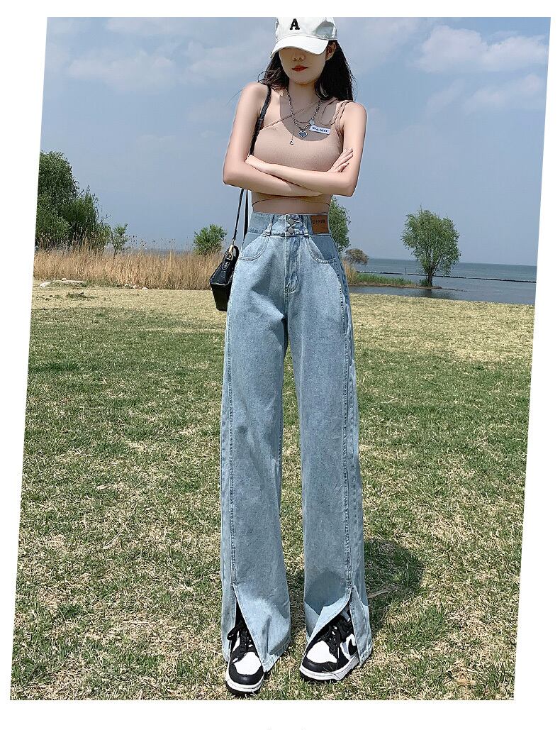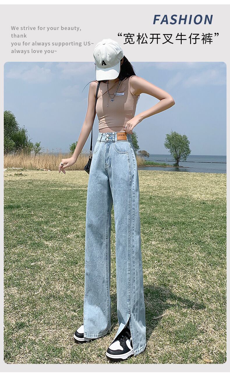 スリットストレートジーンズレディースハイウエストルーズ2022夏新作薄モップスプリットフレアパンツ春 ハイウェスト レッド スプリング 春物 サマー 夏物 youqi39862331631