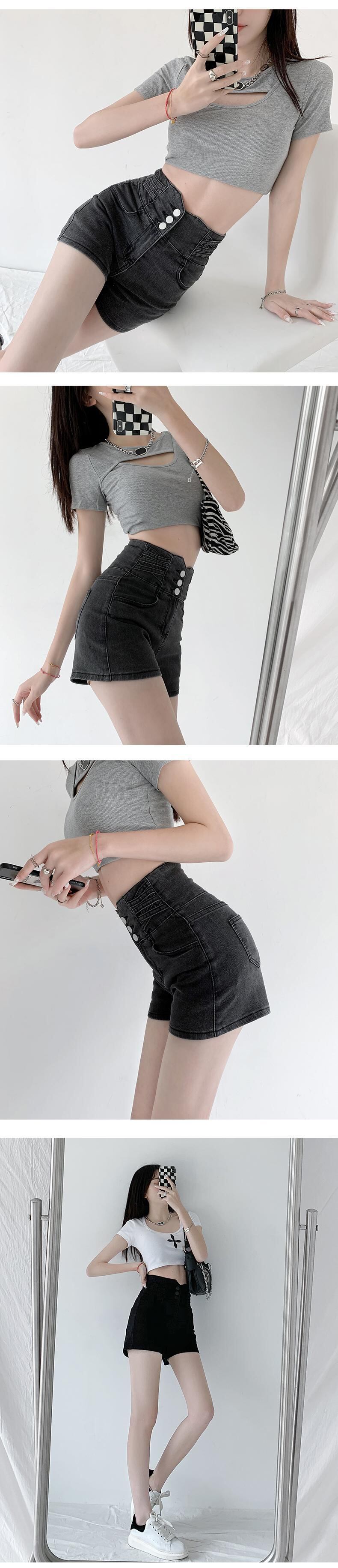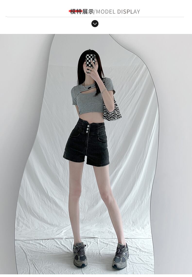 ウエストベリーデニムショーツ女性ヒップリフトルーズワイドレッグスリーブレストデザインスーパーショートパンツタイドイン ブルマー ワイドパンツ youqi1845022108