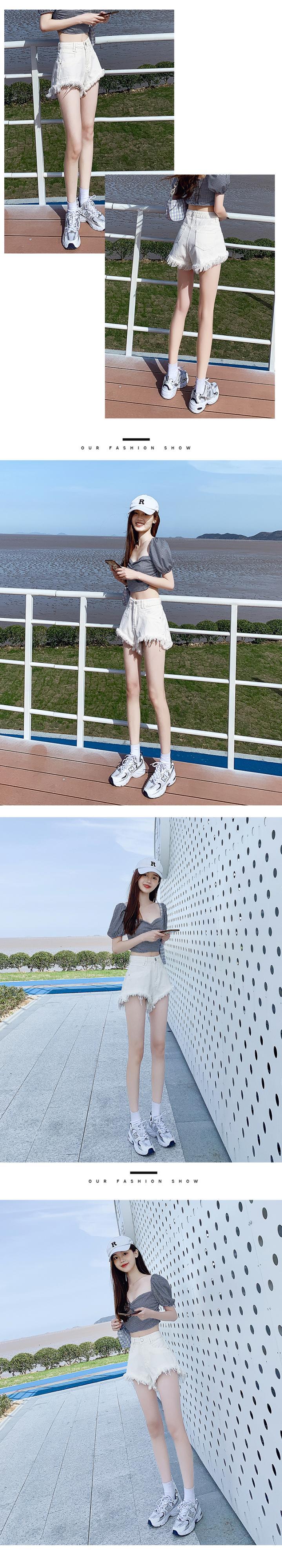 ピンクデニムショートパンツレディースサマーハイウエストイントレンディなルーズワイドレッグローエッジa-word薄パンツ薄手 夏物 ショーツ ブルマー youqi32648452787